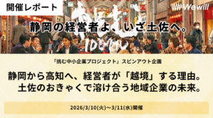 「地域や組織の枠を超えた経営者・リーダー層の交流」を目的に、静岡の経営者の皆様とWewillが高知へ越境するツアーを開催しました。詳細はこちらからご覧いただけます。